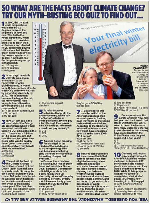 This is picked up from Andrew Bolt under the heading, Global Warming, The Quiz. How much ignorance must go into the belief in AGW is one of the most bizarre experiences, even more incredible than the belief in socialism or Keynesian economics which not so oddly affects almost exactly the same people. The quiz is originally from The UK’s Daily Mail, one of the few sane newspapers left in the world.