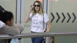 Southern — who had already tried to drum up publicity over her initially rejected visa application — pulled another stunt upon arrival in Brisbane by wearing a t-shirt emblazoned with the slogan ‘It’s Okay to be White.’