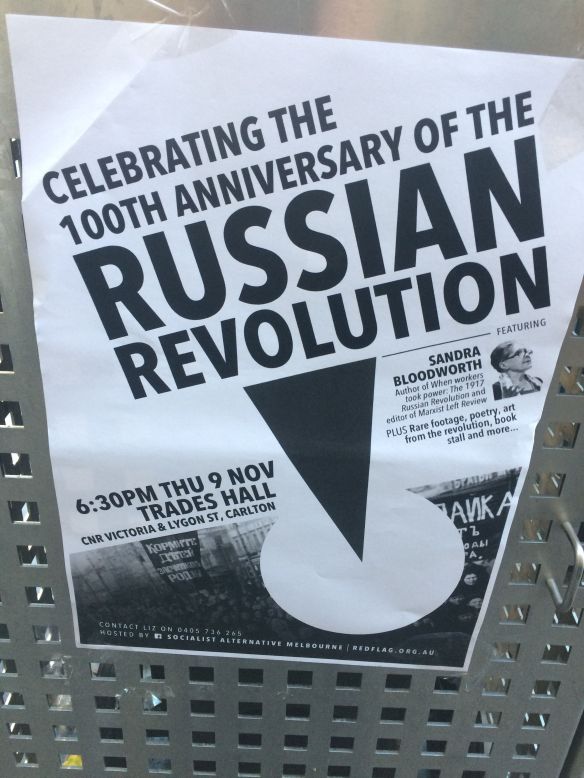 Here it is November 7 and it’s the 100th anniversary of the October Revolution – that is, the Russian Revolution – and there is going to be a celebration in Melbourne, and no doubt everywhere else across the West (but certainly not in Russia). Of course, for most of us, the only part worth celebrating is that we do not live in a communist state. Not for all these fools trying to get us there. Already discussed last month since the October Revolution was how the Russians remembered it, as did all communists. The question that really comes out of this is the absence of sense in supporting these regimes. Since we know that some people do not learn from history, we are forever in danger of falling into some leftist trap.